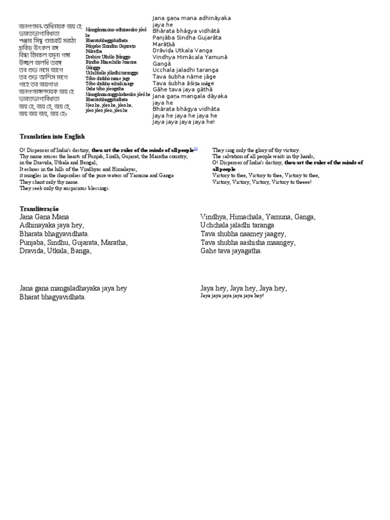 Jana Gana Mana Adhinayaka Jaya Hai Bharat Bhagya Vidhata Meaning / It was written by nobel laureate rabindranath tagore in 1911 and in the same year, it was sung for the first time by indian national congress (a political party).